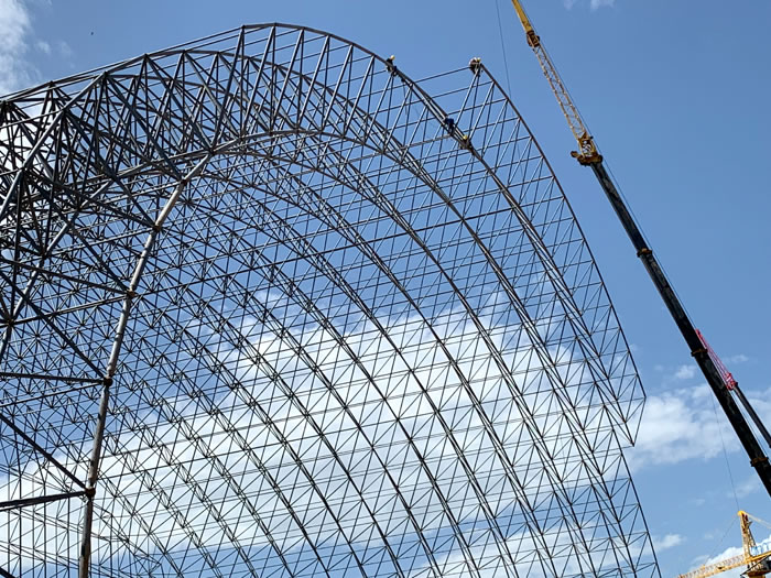 (2)网架加工前应对现场尺寸进行复测,确认无误后方可进行加工、安装;网架制作、运输、安装应遵守《空间网格结构技术规程》JGJ7-2010、《钢网架仪征螺栓球节点》JG/T 10-2009、《钢网架仪征螺栓球节点用高强度螺栓》 GB/T 16939-2016、《仪征钢结构仪征工程仪征施工规范》 GB50755-2012、《仪征钢结构仪征工程施工质量验收标准》 GB50205-2020。